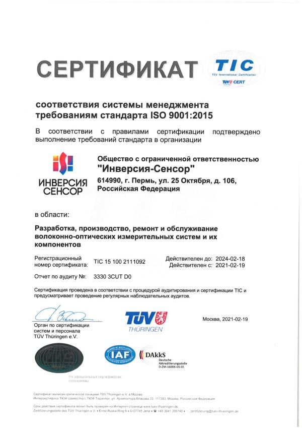 Сертификат соответствия ISO 9001:2015