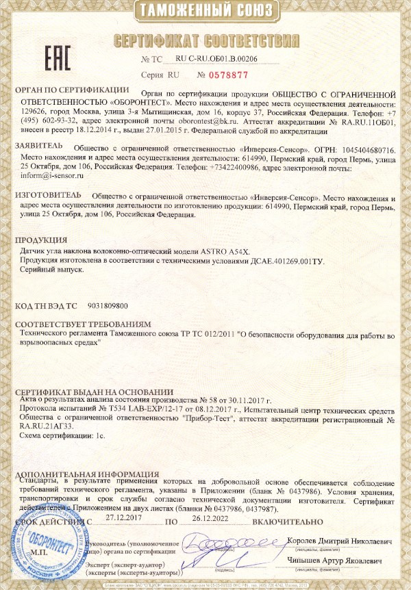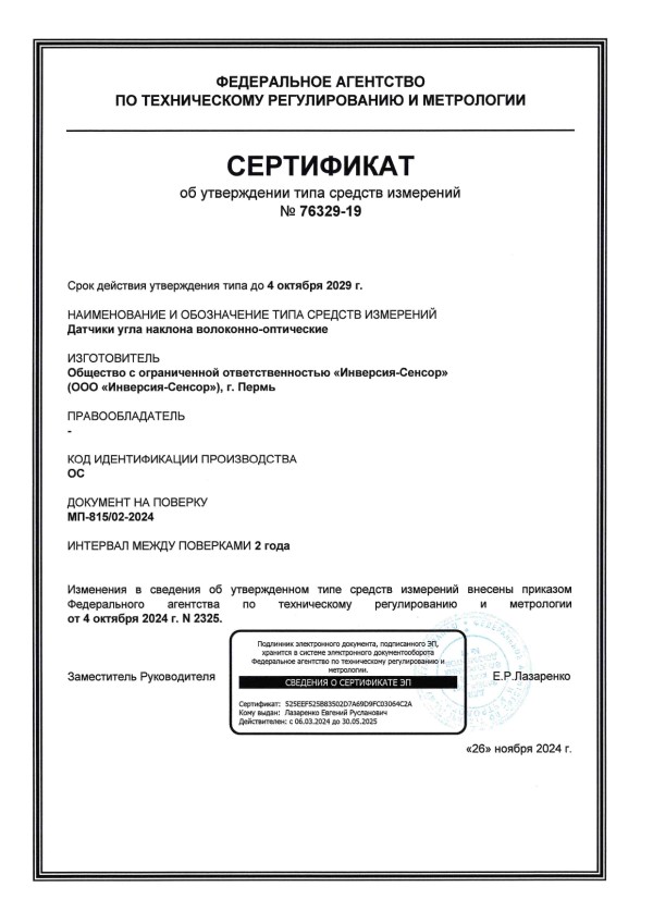 Сертификат СИ датчики наклона